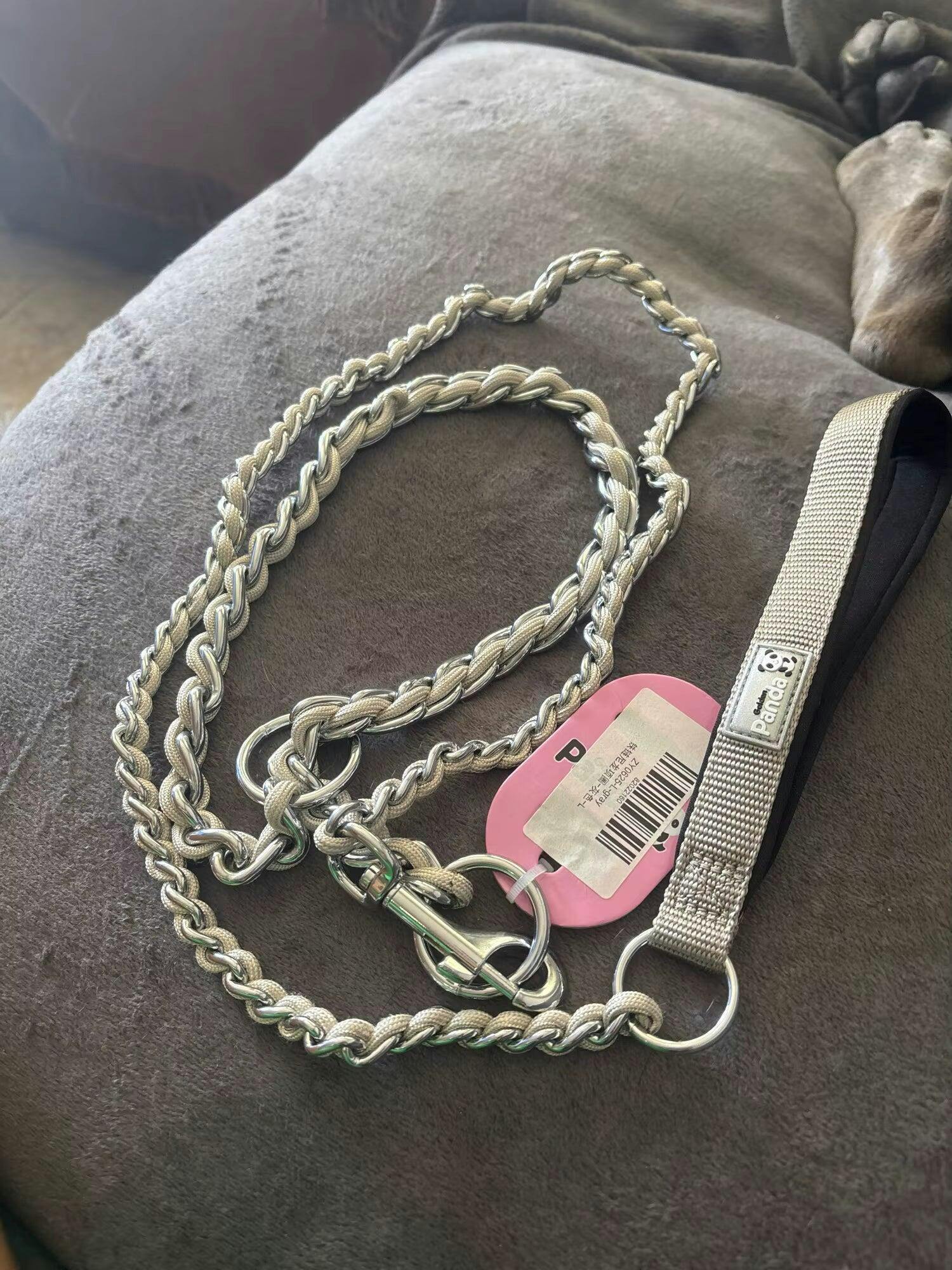 La laisse est vraiment robuste et inspire confiance.. elle semble bien conçue pour résister aux morsures ou aux tractions fortes. Le design en chaîne et corde P shaped ajoute une touche esthétique inhabituelle et pratique. Seul petit inconvénient : elle est un peu lourde pour mon petit chien de 8 kg. Je la recommande pour des chiens de taille moyenne ou grande.